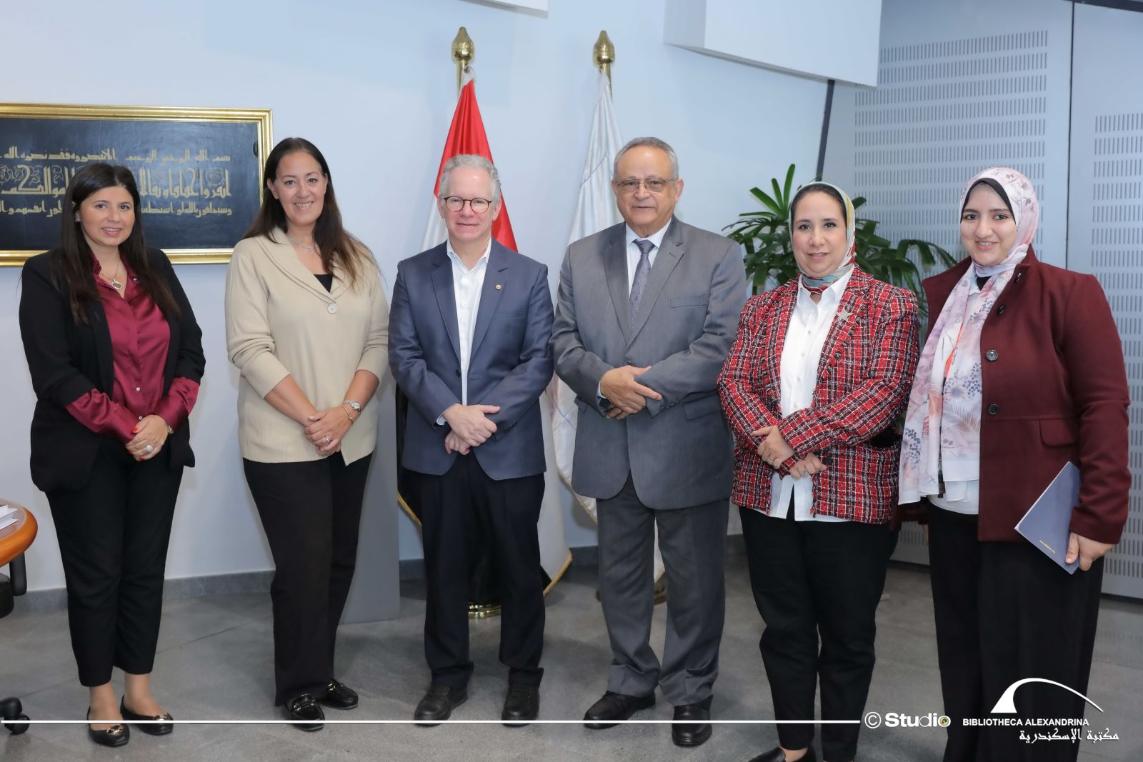 The meeting was attended on behalf of the Bibliotheca Alexandrina by Ms. Heba Elrafey, Senior Public Relations and Acting Head of the External Relations and Media Sector; Dr. Marwa El-Wakeel, Head of the Academic Research Sector; Eng. Esraa El-Fayoumi, Acting Head of the Researchers' Support and Development Unit at the Center for Special Studies and Programs (CSSP) affiliated to the Academic Research Sector; and Ms. Eman Wahdan, Acting Head of the Public Relations Section affiliated to the Public Relations and Media Department.