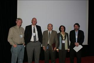 From the left: Mr. Daniel J. Clancy, Engineering Director for the Google Book Search Project; Dr. Usama Fayyad, Yahoo's Chief Data Officer and Senior Vice President; Dr. Serageldin, BA Director; Dr. Noha Adly, ICT/ISIS director; and Mr. Mark S. Kamlet, Provost of Carnegie Mellon