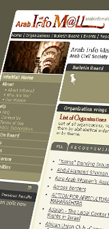 The website (http://arabinfomall.bibalex.org) sheds light on NGOs/CSOs activities and successful projects. The website comprises a logging-in mechanism so that users and visitors would be identified. All civil society organizations are classified alphabetically, geographically, and according to their fields of interest and activities. A dedicated workspace for each organization shows the organization’s details, contact information, and areas of interest. A bulletin board for each NGO publicizes its news and events. A common bulletin board is also available for the entire mall. A search facility searches within all organizations’ information, news, events and reports. Private and public discussion forums give the opportunity for interested individuals to exchange opinions through a discussion forum, and contribute and share published reports. Recently two new sections were added to the website;“Opportunities” and “Voting” sections. The Opportunities section is a space in which each organization shows the projects it is involved in and any available job vacancies. Meanwhile, the Voting section gives the users a chance to vote on different issues and then view the voting results.