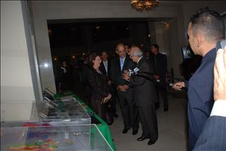 H.E. Mrs. Suzan Mubarak during her tour in the Memory of Modern Egypt Exhibition accompanied by Dr. Youssef Ghaly; Minister of Finance and Dr. Ismail Serageldin, BA director - Cairo Opera House, Oct 27, 2008
